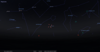 Son élongation est de 20° Ouest ; il est devant la constellation des Gémeaux (Gem) et marque le 10e degré du signe du Cancer.