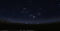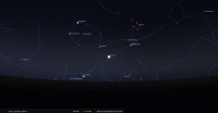 les deux astres sont alors à sont alors à l’Est-nord-est à 17° de hauteur environ et la portion éclairée de la Lune est de 9%.