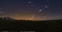 les deux astres sont alors à sont alors à l’Est à 30° de hauteur environ et la portion éclairée de la Lune est de 26%.
