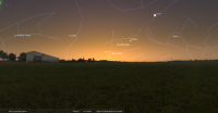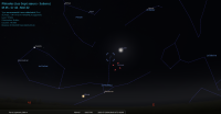 Au petit matin de ce jour, pour notre localisation, la Lune se lève à 4h19 et Jupiter à 4h47.
