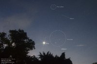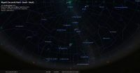 - A 6h20, la Lune est conjointe à Jupiter dans le plan équatorial à 15h15, la planète 4°54’ au Sud. Elongation solaire de Jupiter
