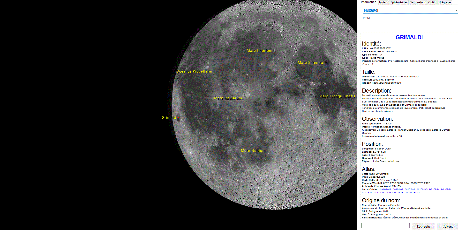 Cartes du ciel 3.8 ou Atlas virtuel de la Lune