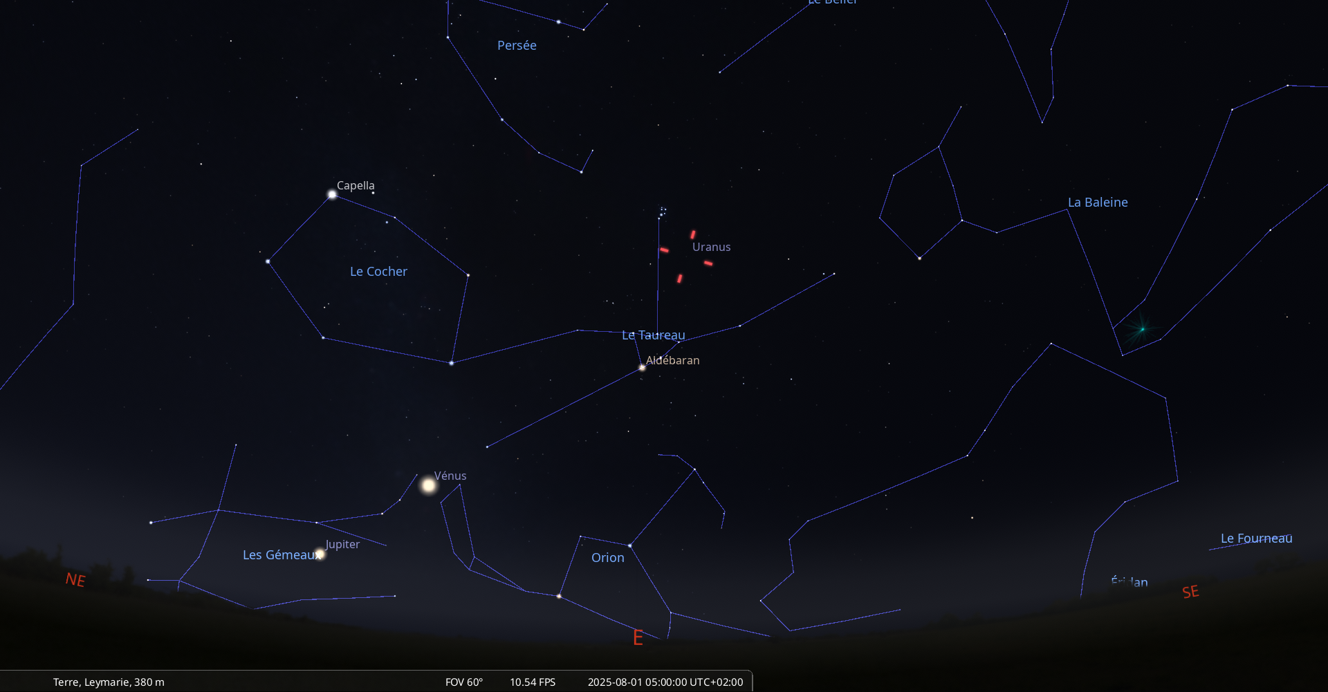 – Aux alentours de 5h00, apprécier la disposition des lunes de Jupiter