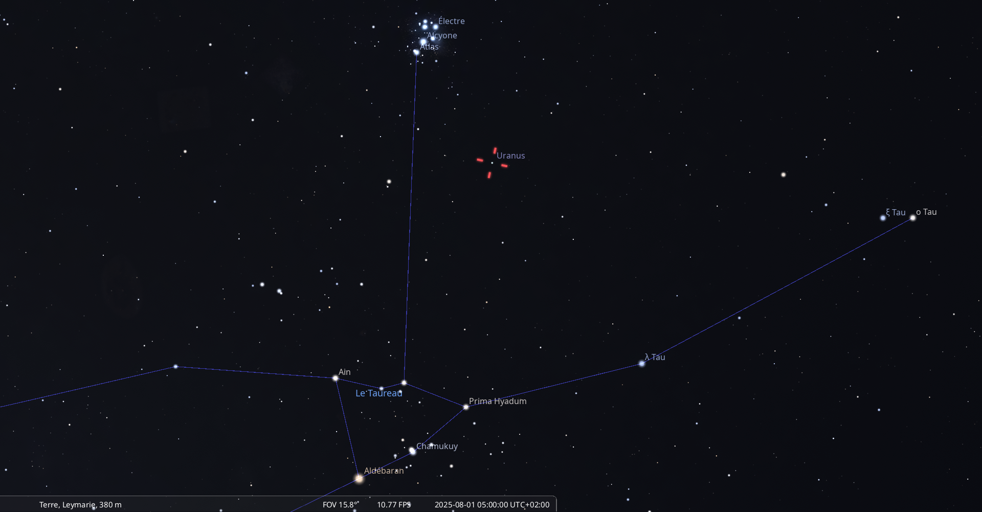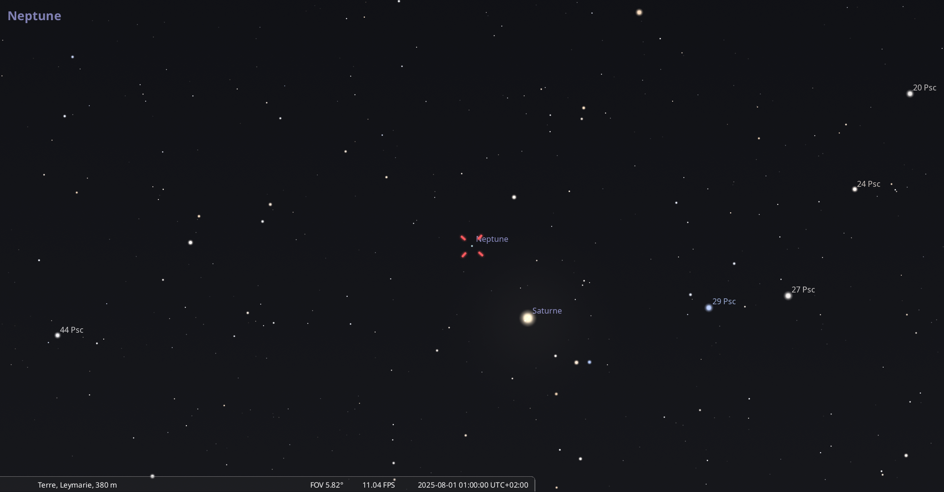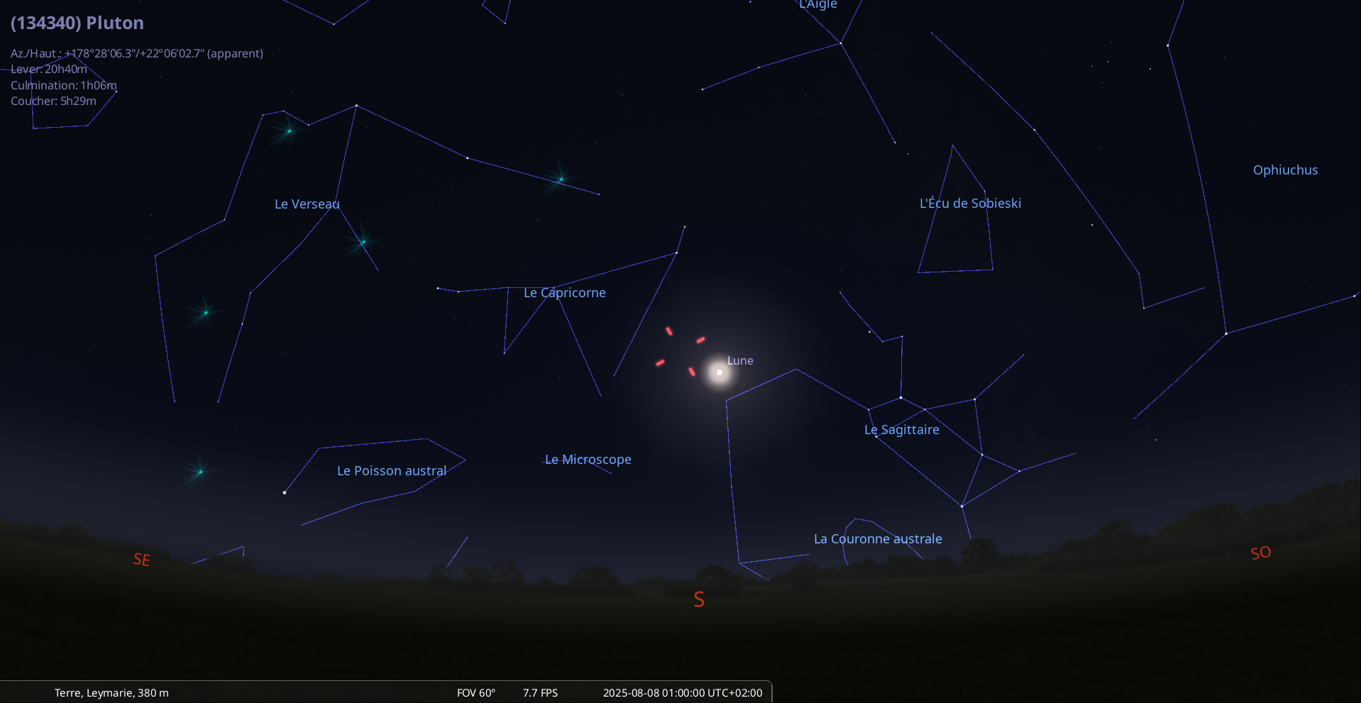 Dans la nuit qui précède, pour notre localisation, la Lune culmine à 0h51 et l’invisible Pluton à 1h06.