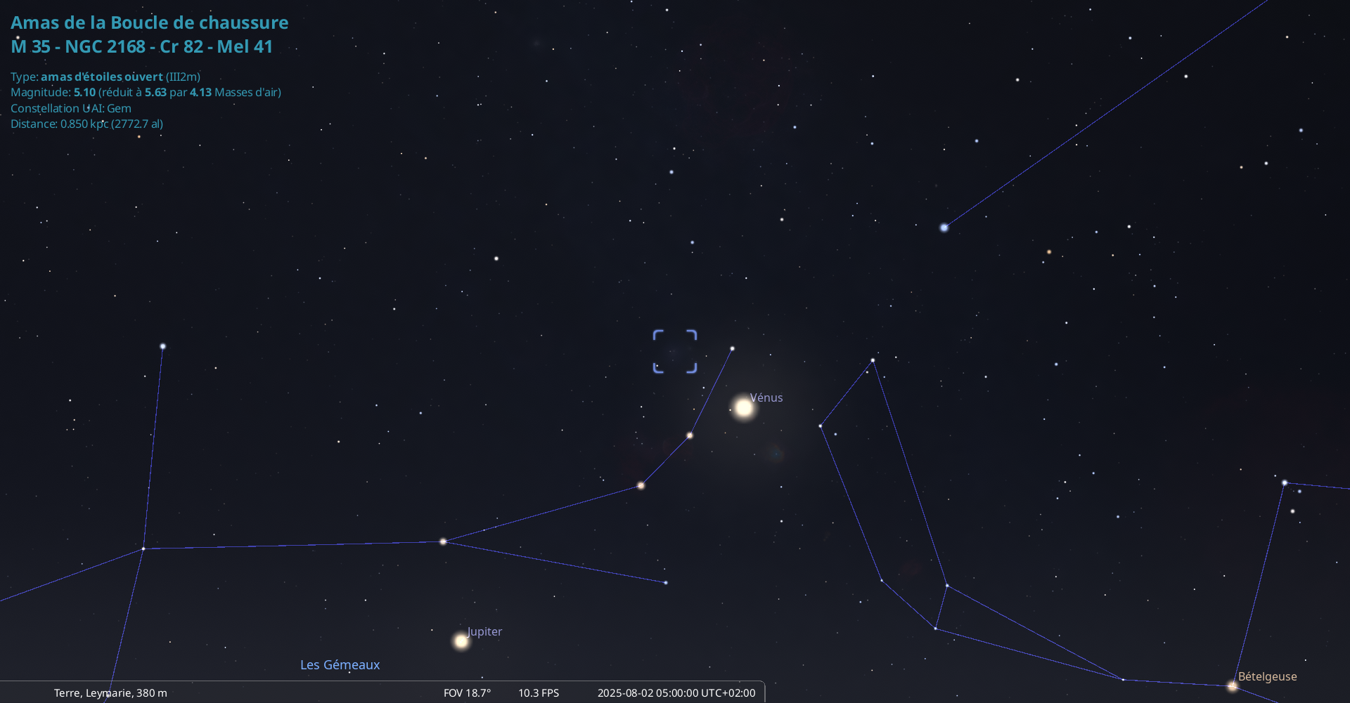 - Aujourd’hui, Vénus passe au plus près de M35 (amas ouvert -Gem)