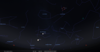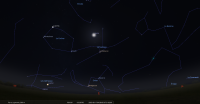 - A 20h13, la Lune est conjointe à Mercure dans le plan équatorial, la planète 8°04’ au Sud ; élongation solaire de Mercure 10° Est