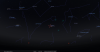 Son élongation est de 12° Ouest ; il est devant la constellation du Cancer (Cnc) et marque le 18e degré du signe du Lion.