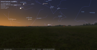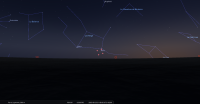 Au petit matin de ce jour, pour notre localisation, Vénus se lève à 4h05, une quarantaine de minutes après Jupiter à 3h24.