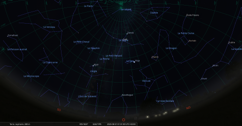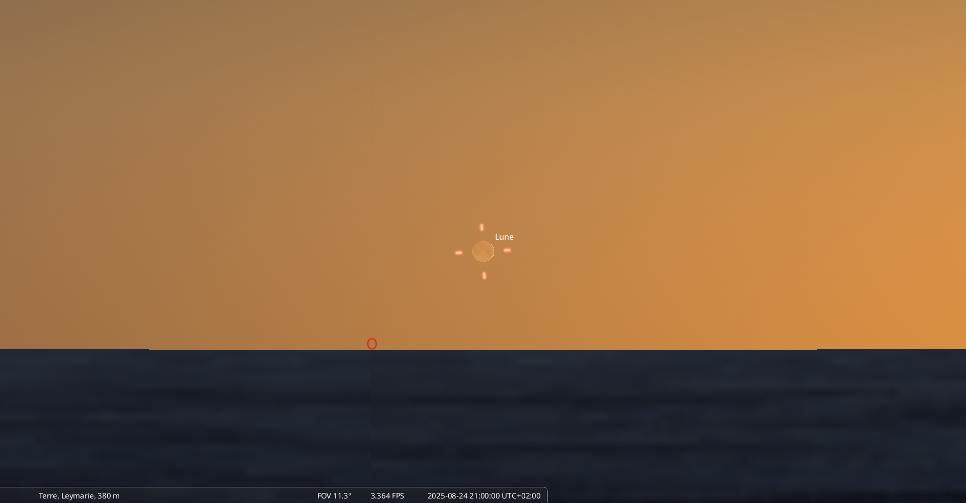 il se trouve au raz de l’horizon, à 2° de hauteur pour notre localisation, à l’Ouest (azimut 272°) ;
