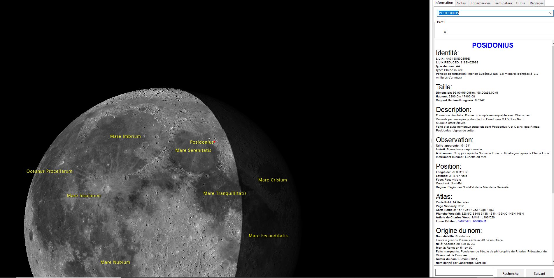 Remarquer en particulier le cratère Posidonius