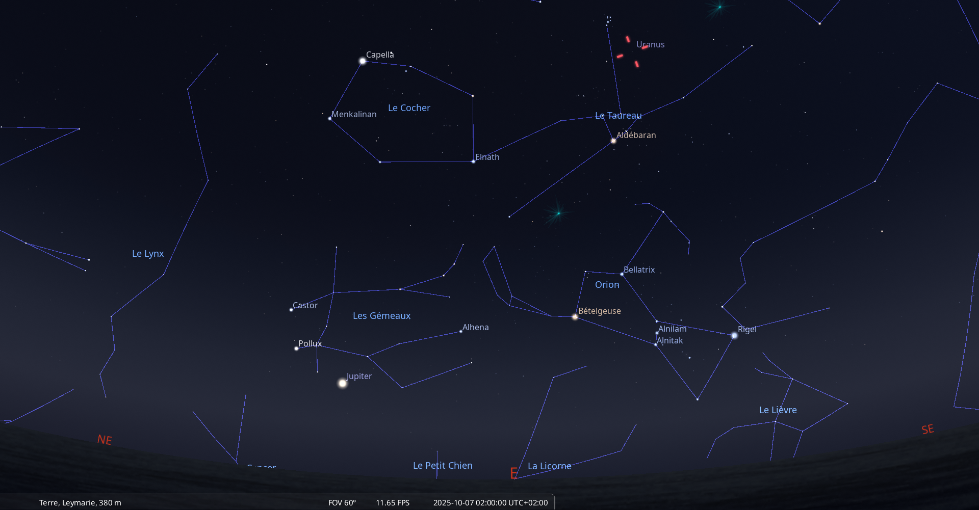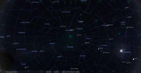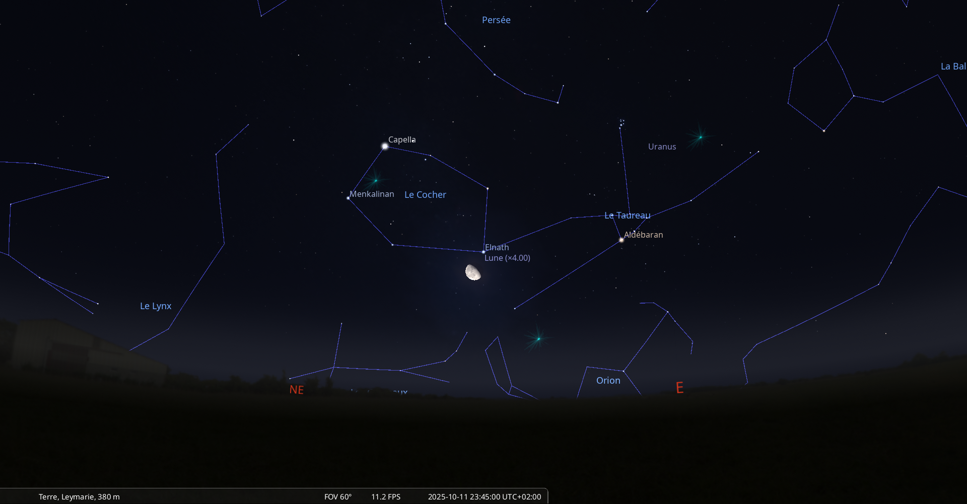 Aujourd’hui, pour notre localisation, Elnath se lève à 21h52 et la Lune à 21h51.