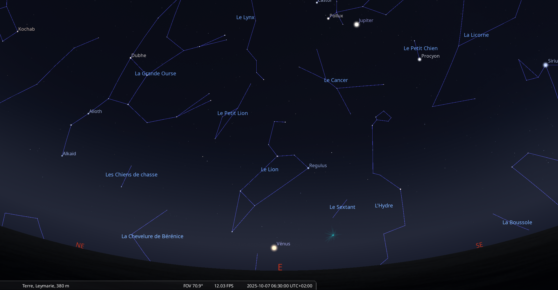 culmine au lever du Soleil et se couche aux alentours du midi vrai.