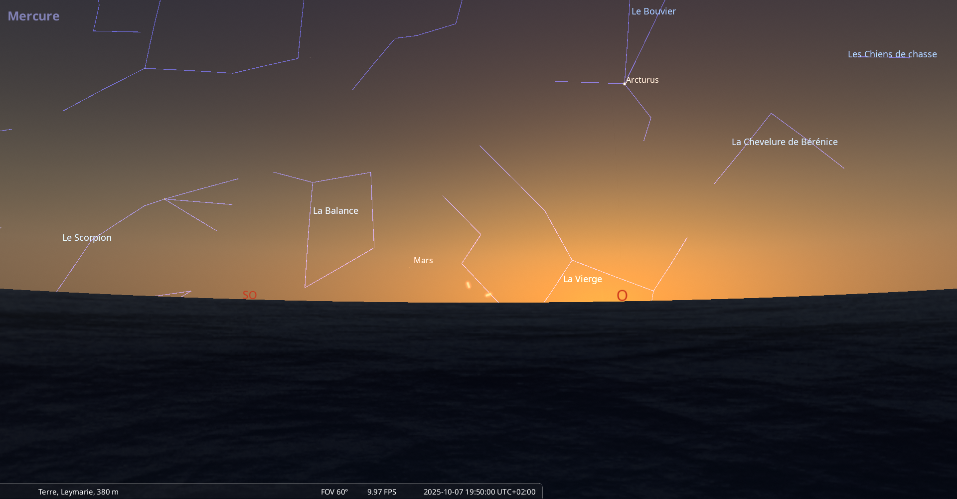 – A 16h37, Mercure, arrive devant la constellation de la Balance (Lib)