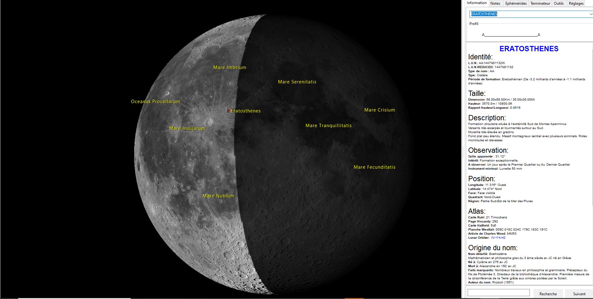 en particulier le cratère Eratosthenes.