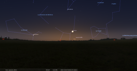 Le lendemain, 20 octobre, Vénus se lève à 6h30 et la Lune, en son dernier croissant, à 7h07.