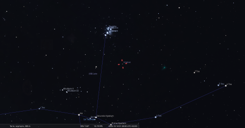 - A 20h20, la Lune est conjointe à Régulus dans le plan écliptique, l’étoile 1°02’ au Sud.