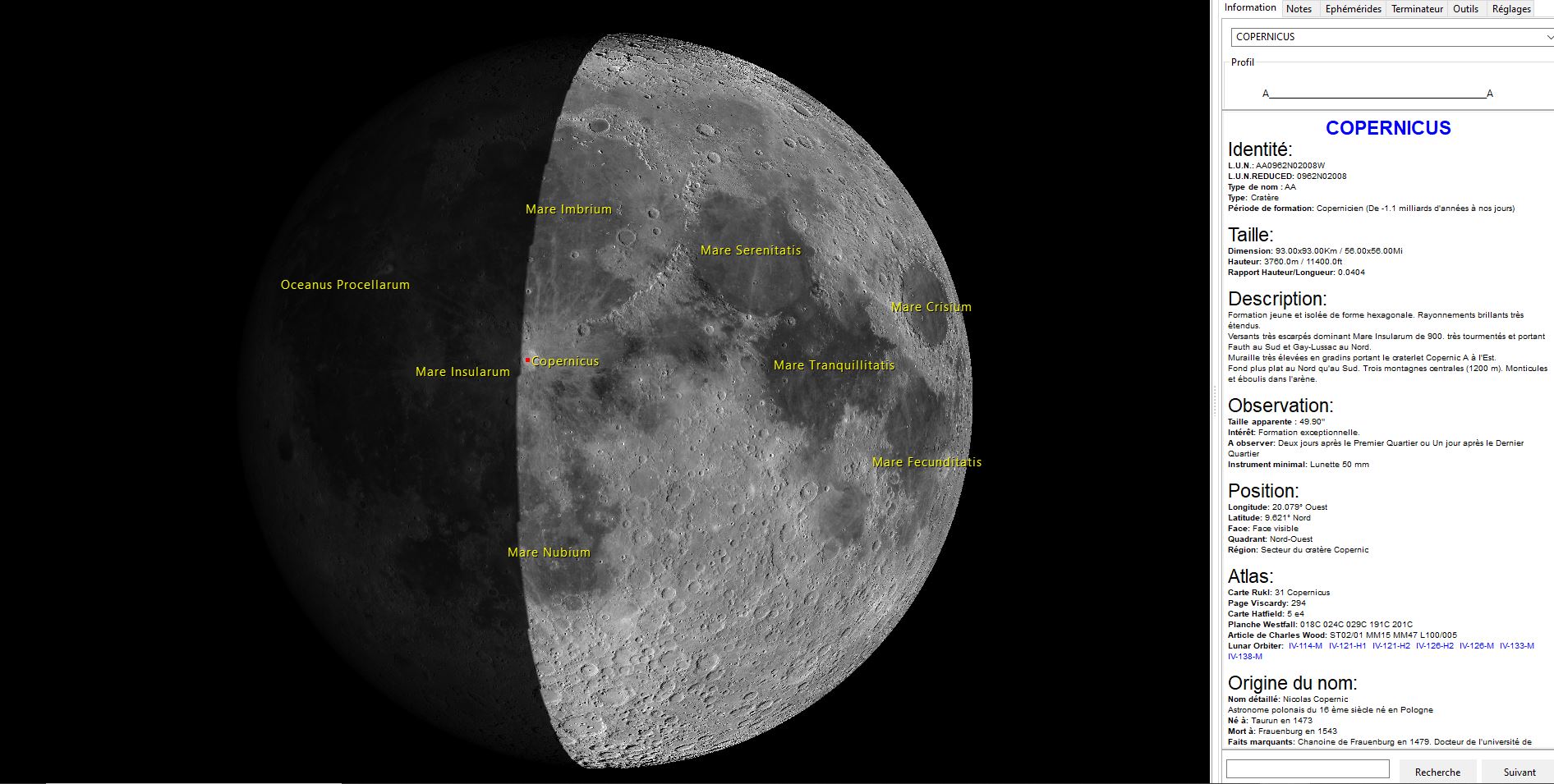 en particulier le cratère Copernic.