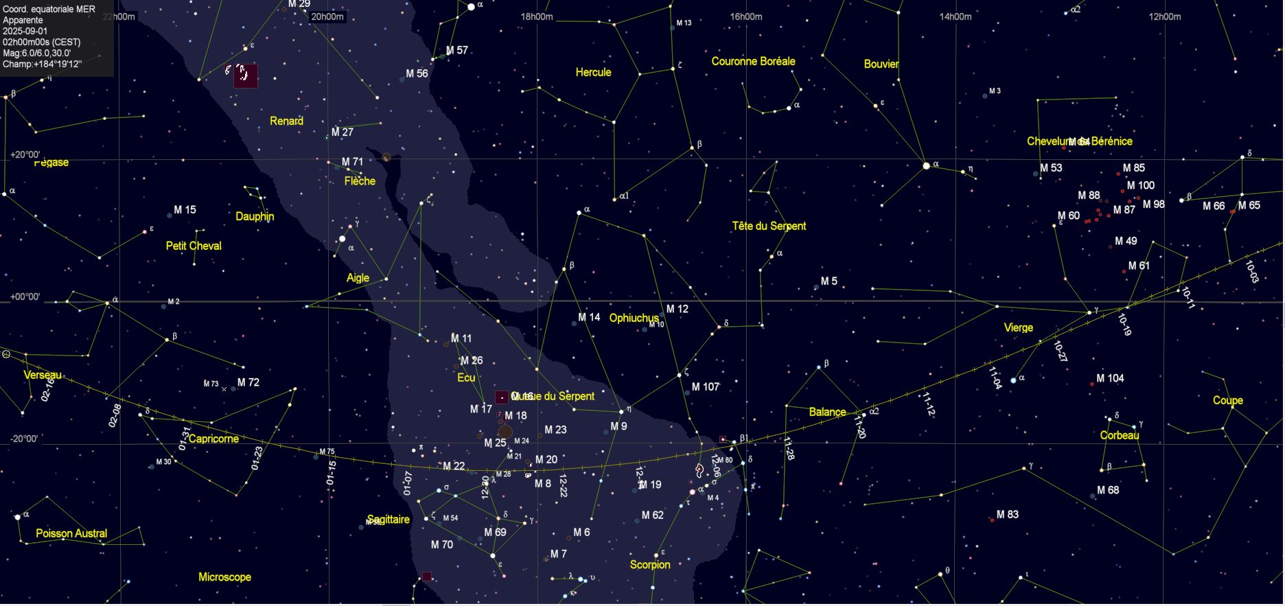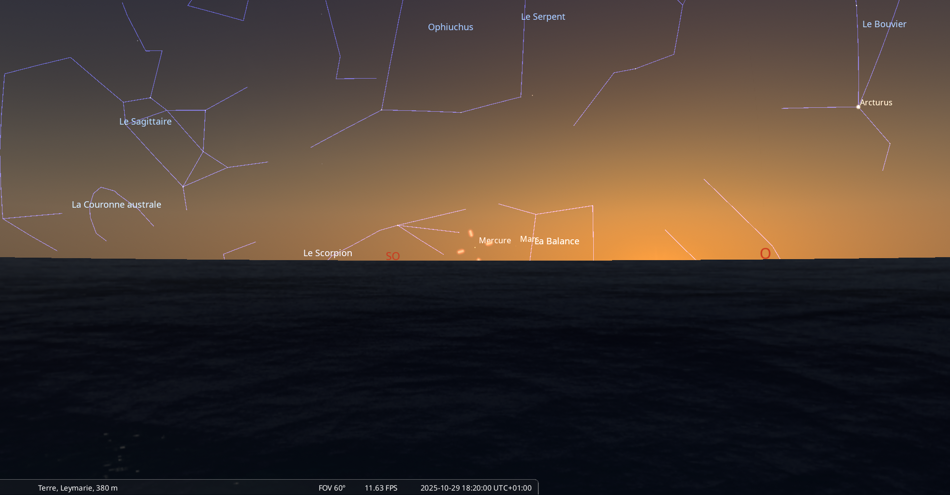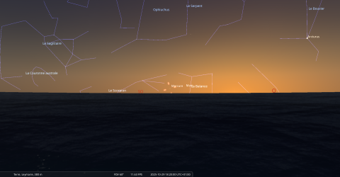 – A 13h21, Mercure, arrive devant la constellation du Scorpion (Sco)