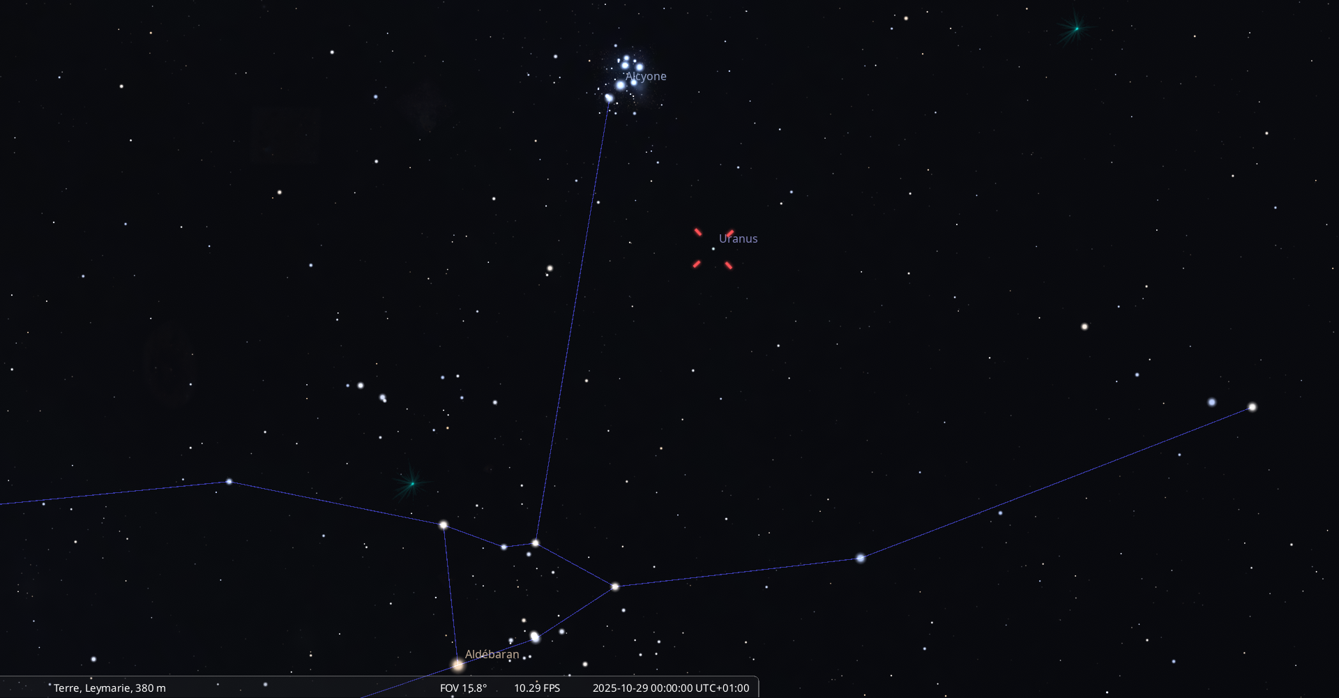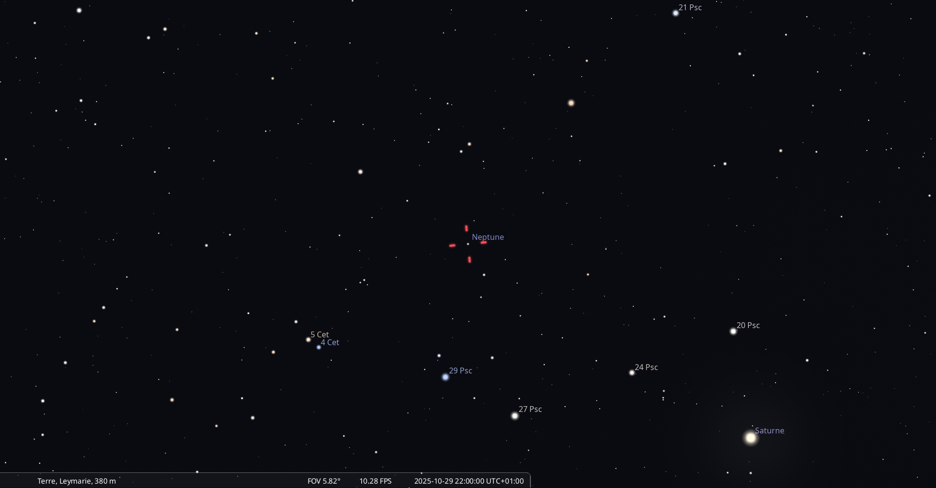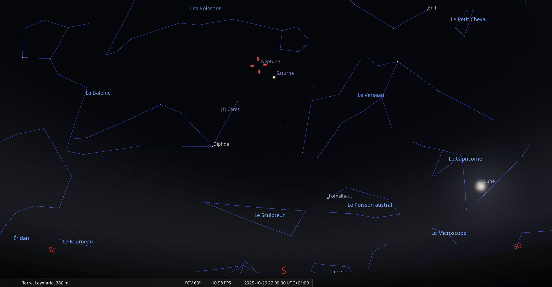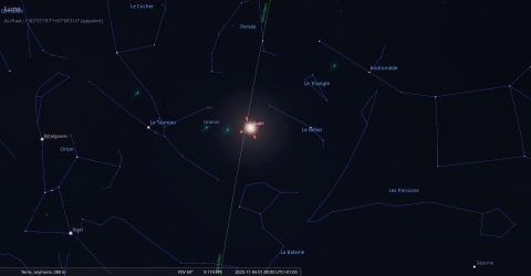 La nuit du 1 au 2 novembre, Neptune culmine à 22h07 pour notre localisation et se couche à 4h01.