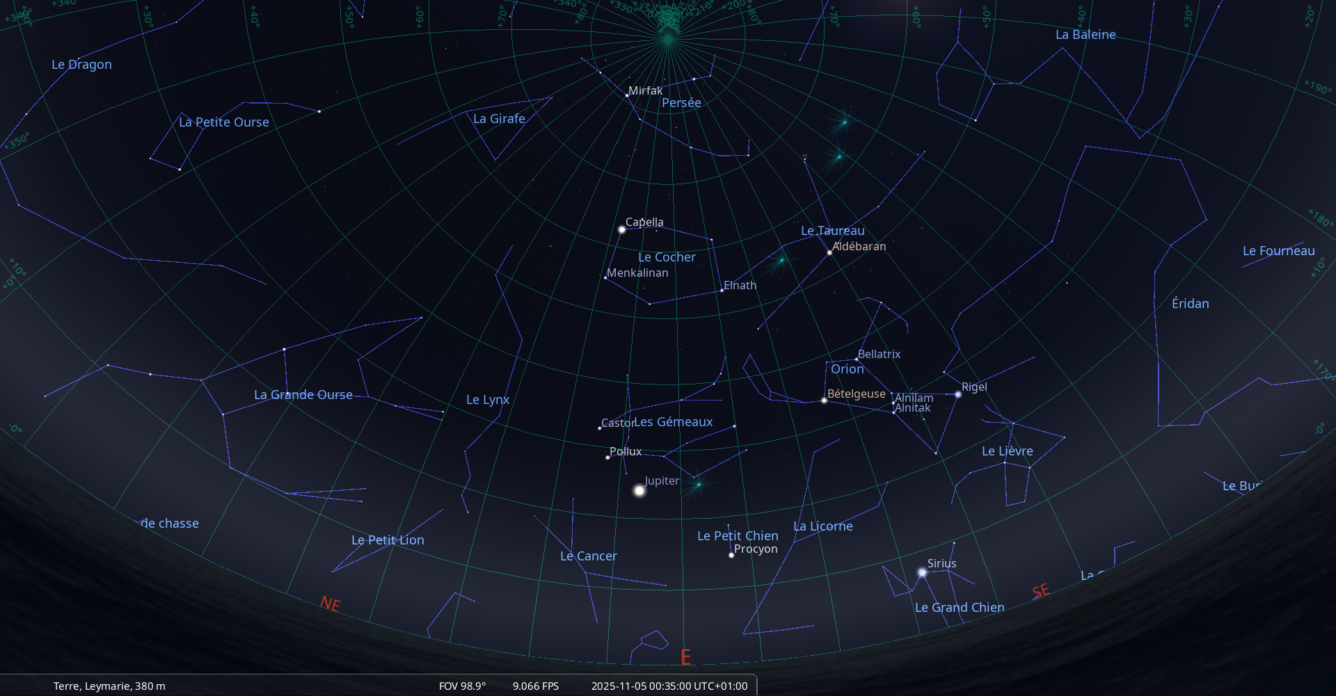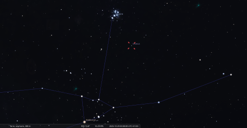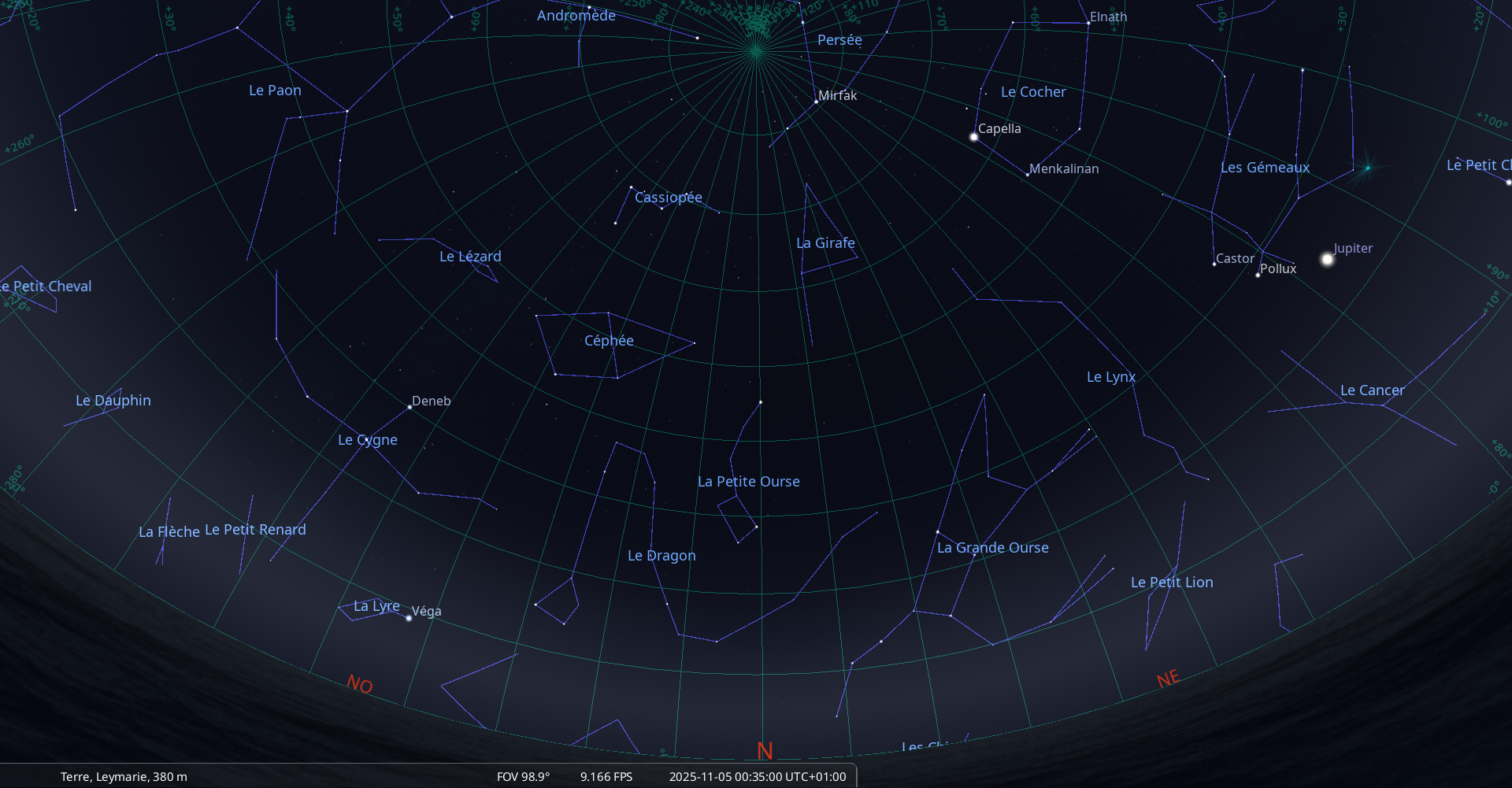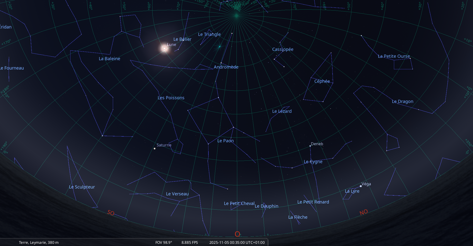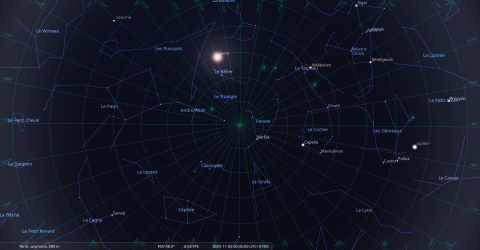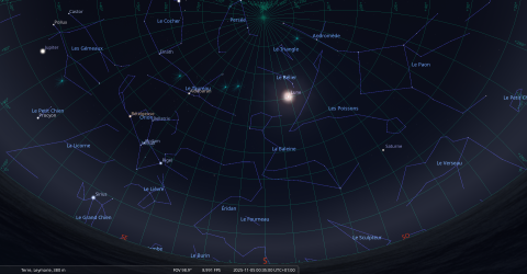 Elle culmine le 6 novembre à 0h55, à 67° de hauteur, soit 6° plus haut que la veille