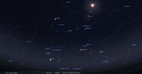 Le 4 novembre au soir, la Lune se lève à l’Est-nord-est,