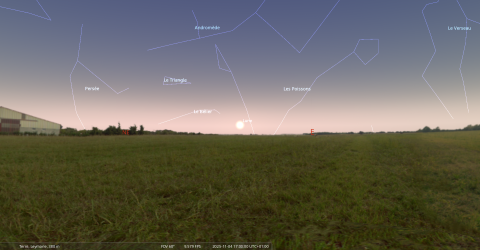 à 17h11 pour notre localisation, soit 25 minutes avant le coucher du Soleil.