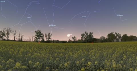 Saturne se couche à 3h37 et la Lune à 4h32.