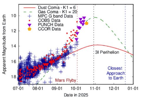 Ces données confirment que 3I/ATLAS suit un modèle assez standard de luminosité des comètes avec les contributions du gaz et de la poussière.