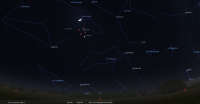 Ce soir, pour notre localisation, la Lune se couche à 17h08, Mars à 17h26, tous deux invisibles.
