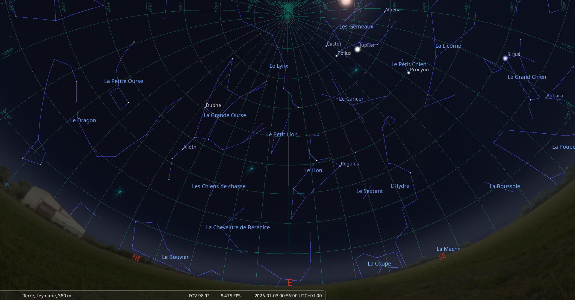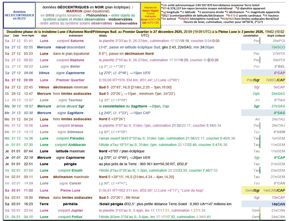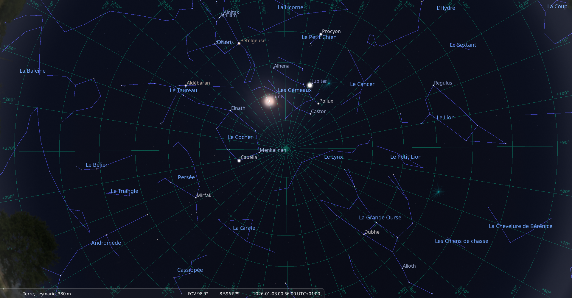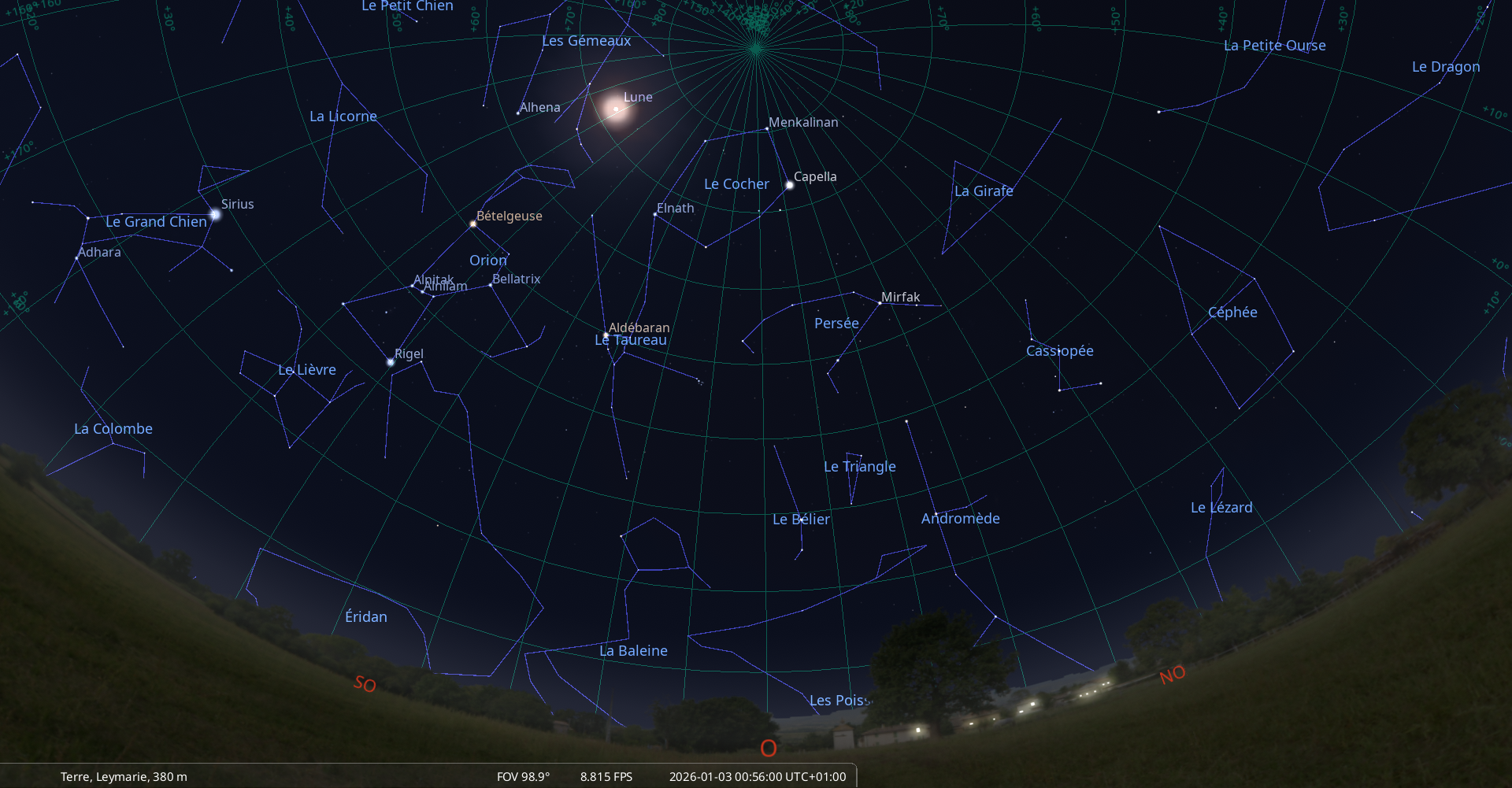 le 1er janvier à 23h23 et le 3 janvier à 0h30 à notre méridien.