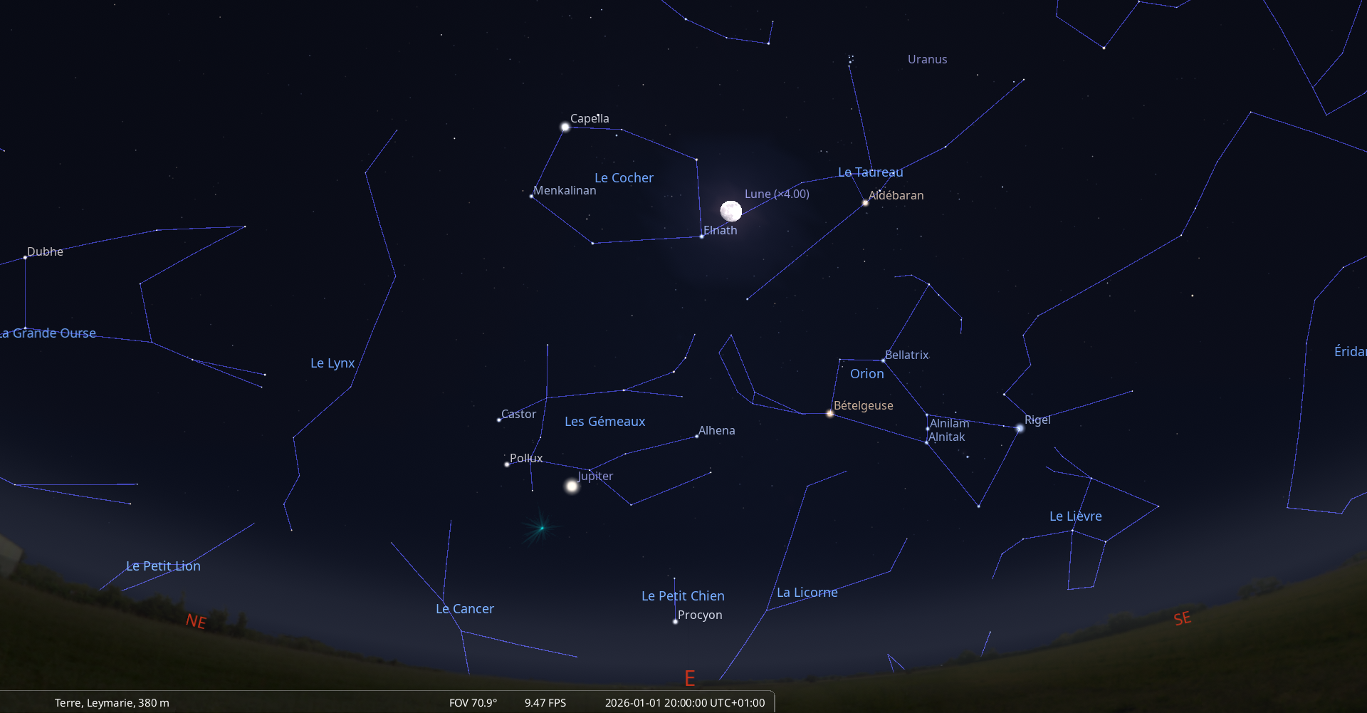 Uranus se couche le 1er janvier à 5h16, la Lune à 6h34.