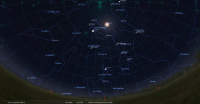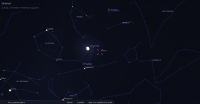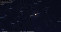 – A 12h38, la Lune arrive devant la constellation du Bélier (Ari) ; longitude 29°48’ (30e BEL) ; latitude +3°48’, monte