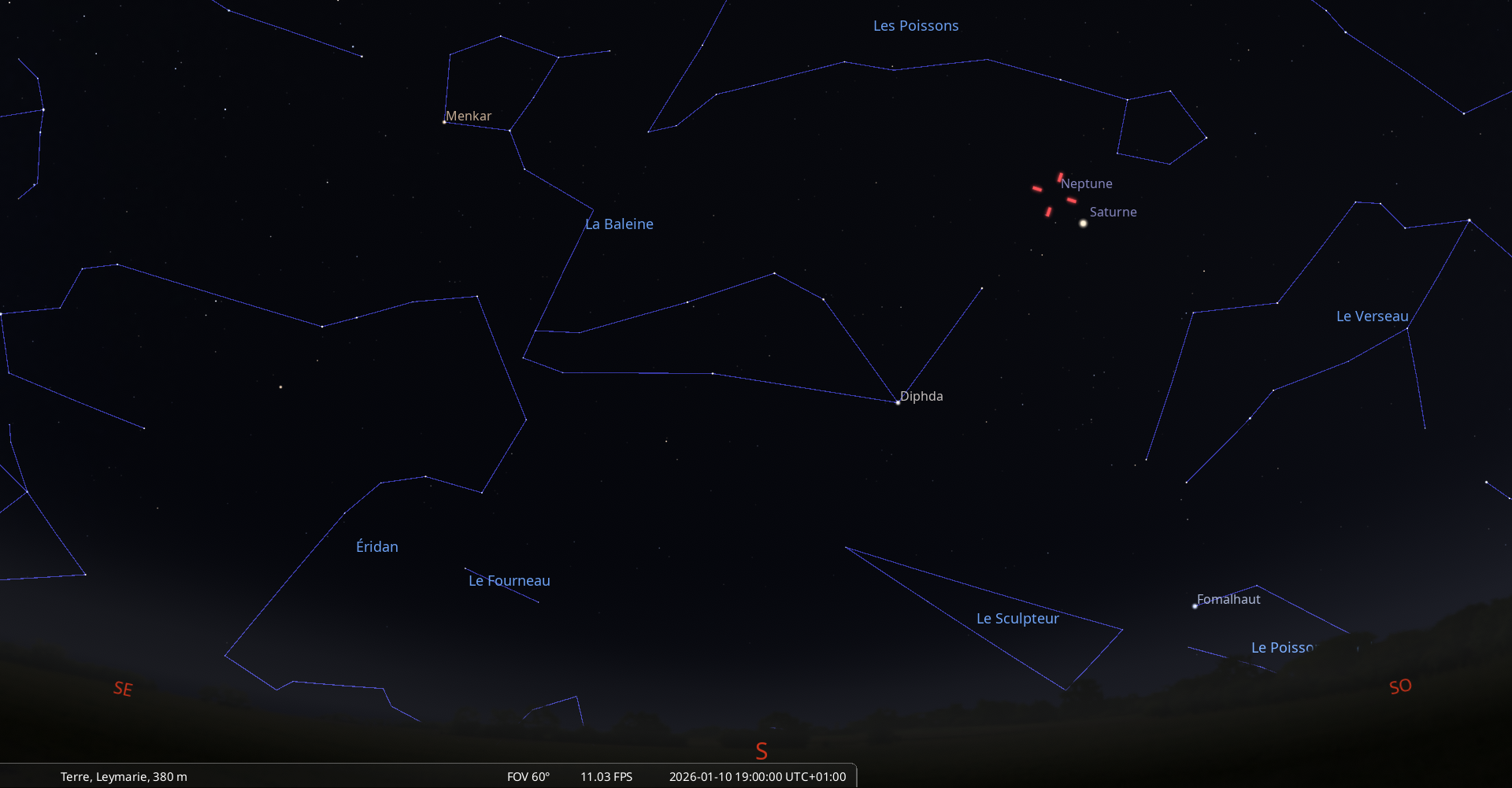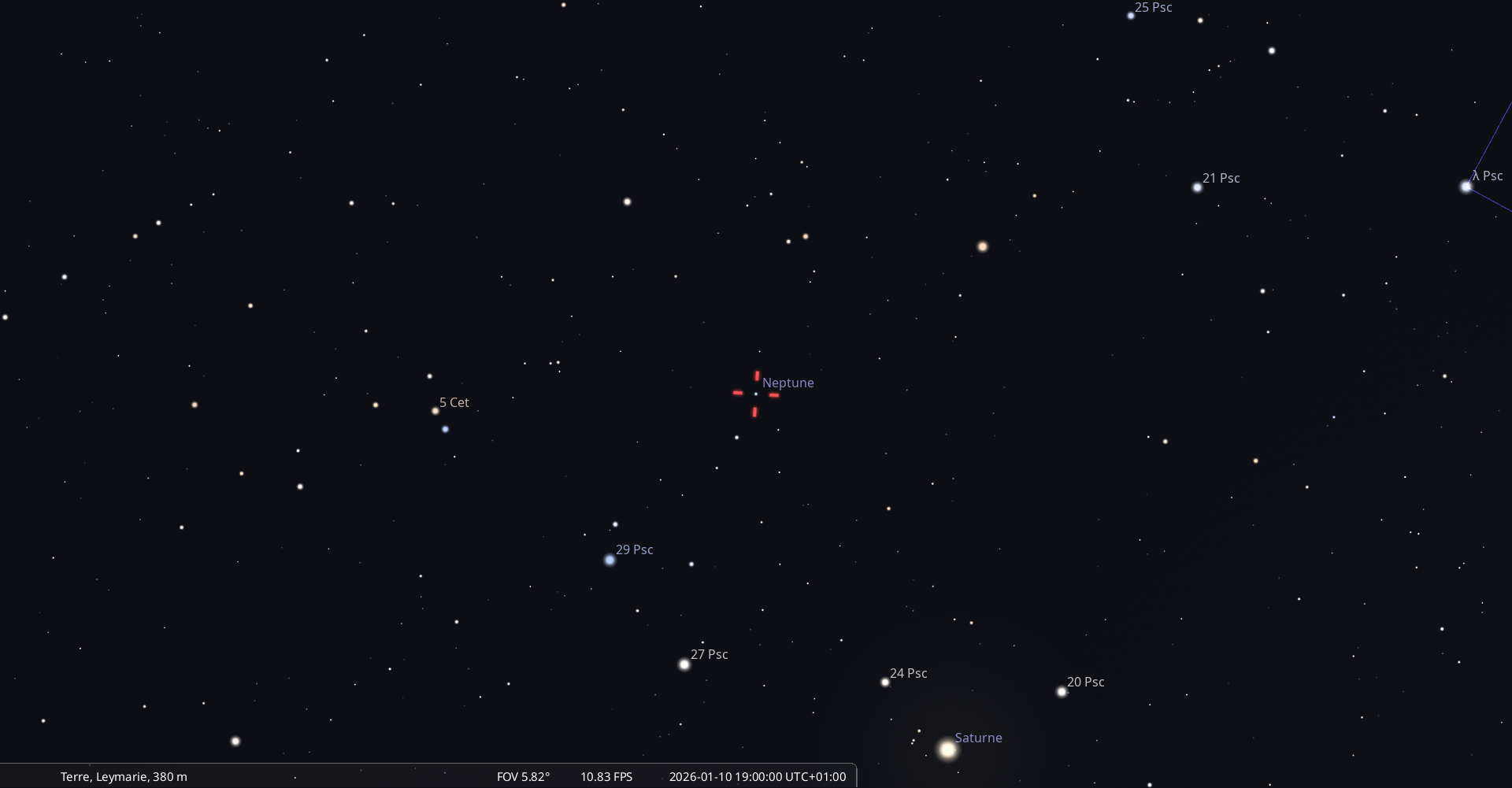 – A 12h16, Saturne, arrive devant la constellation des Poissons (Psc)