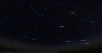 Au Sud-est, à 5° de hauteur, alors que le Soleil est à 5° sous l’horizon. Son élongation est de 28° Ouest ;