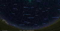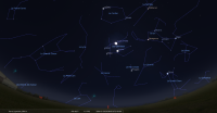 – A 20h14, la Lune arrive devant la constellation du Cancer (Cnc) ; longitude 117°03’ (28e CAN) ; latitude +3°30’, descend