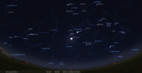 - A 22h20, la Lune est conjointe aux Pléiades dans le plan écliptique, l’amas ouvert (Messier 45) 1°03’ au Sud.