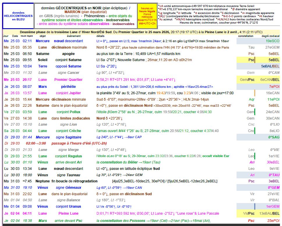à 18h58 le 25 mars à notre méridien.