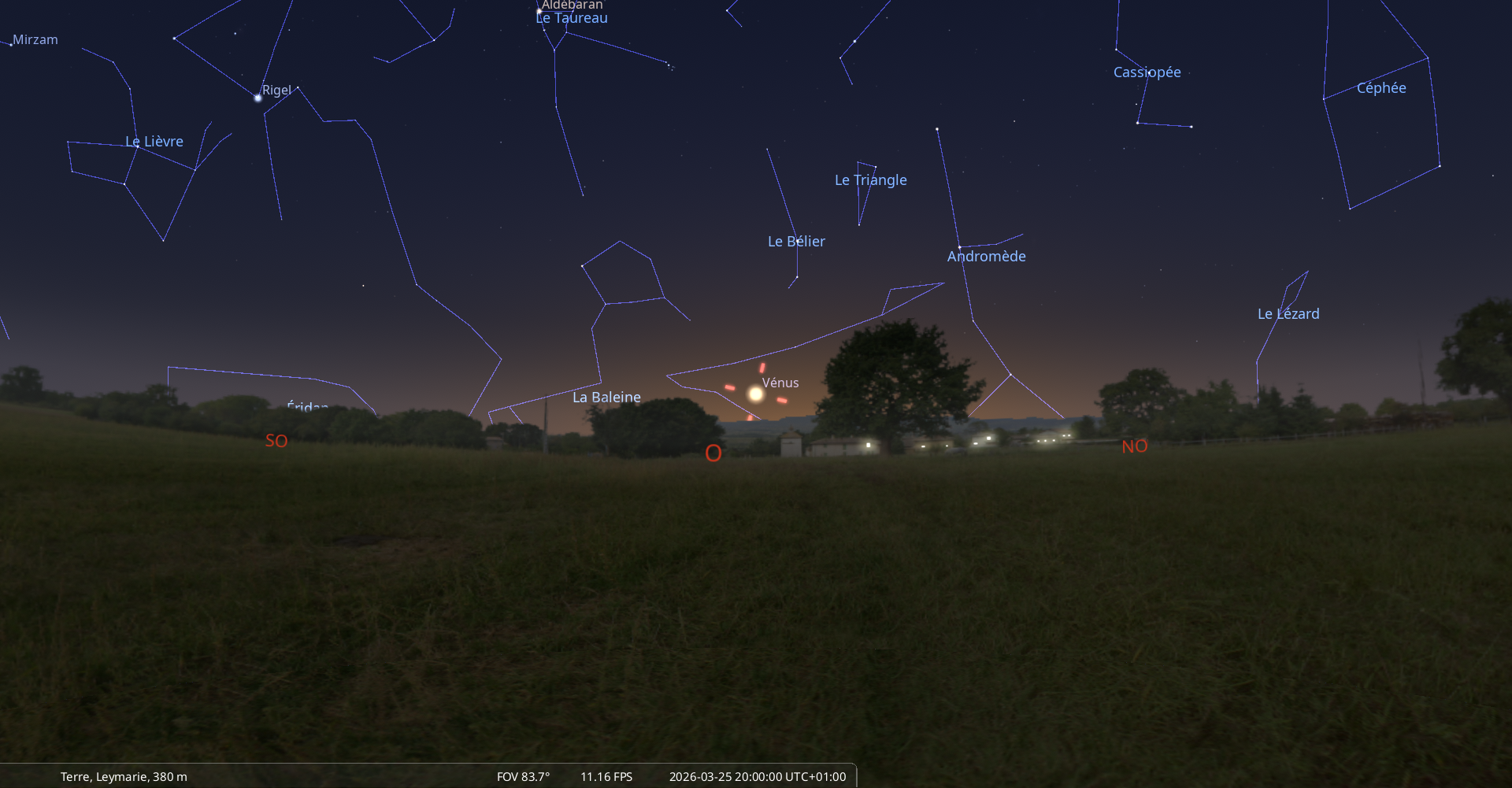 - A 1h10, Vénus arrive devant la constellation des Poissons (Psc)