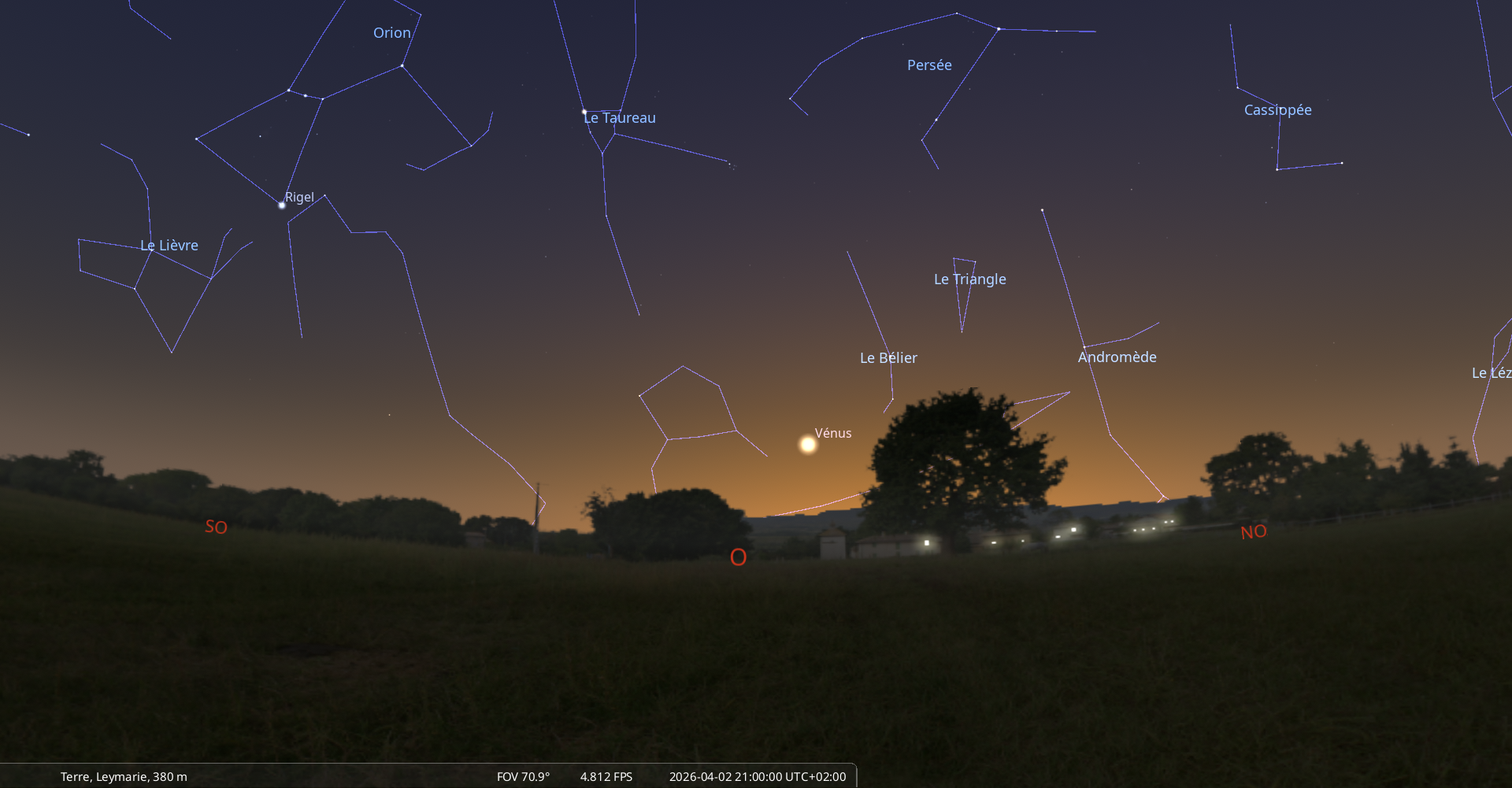 à 19h59 pour notre localisation, soit 19 minutes avant le coucher du Soleil.