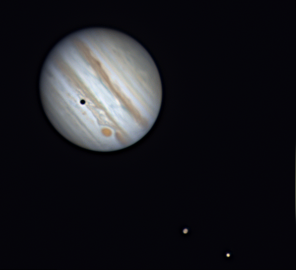 - A 13h57, la Lune est conjointe à Jupiter dans le plan écliptique, la planète 3°49’ au Sud.