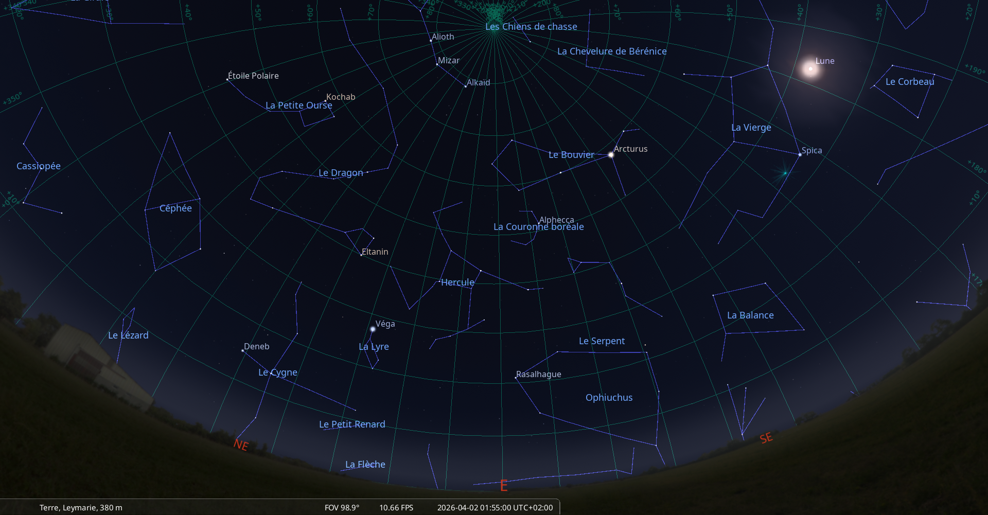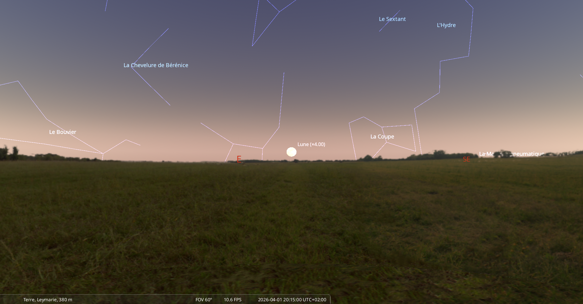 Le 1er avril au soir, la Lune se lève à l’Est-sud-est,