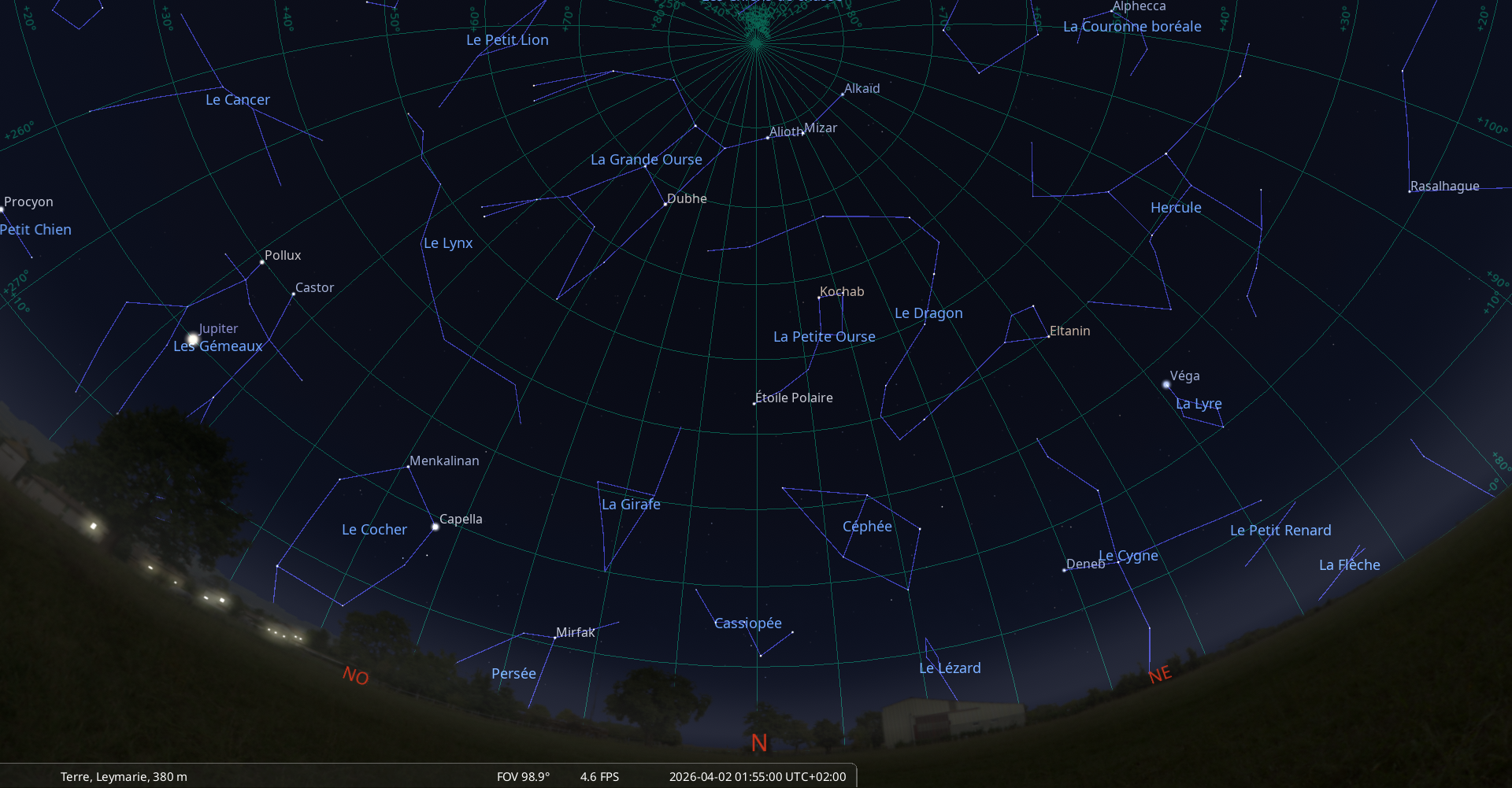 Elle culmine au plus haut dans l’hémisphère Nord, à 73° de hauteur à notre latitude (44° Nord),