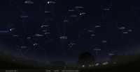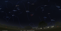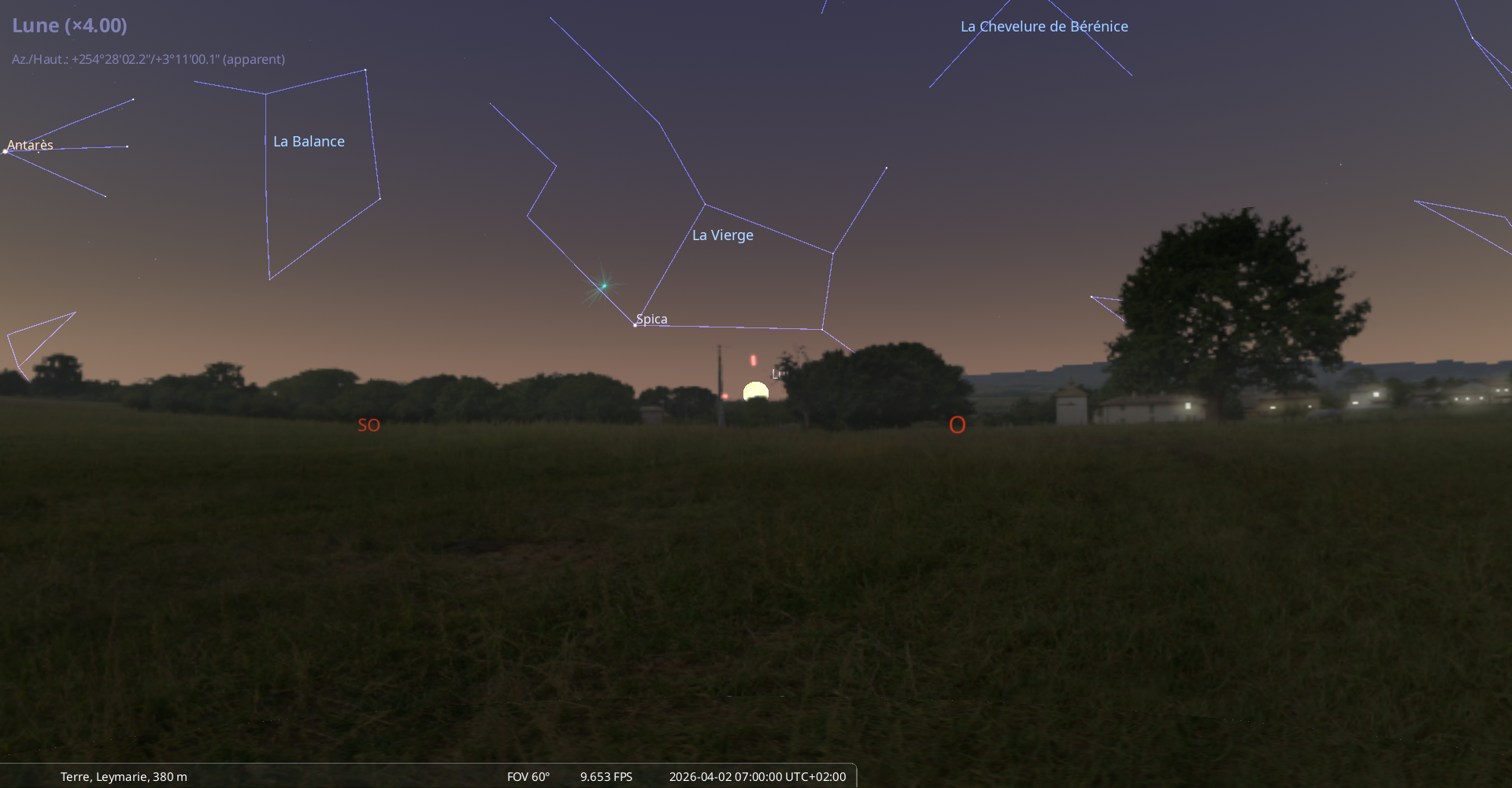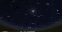 - A 17h47, la Lune arrive devant la constellation de la Vierge (Vir) ; longitude 174°04’ (25e VIE) ; latitude -1°22’, descend