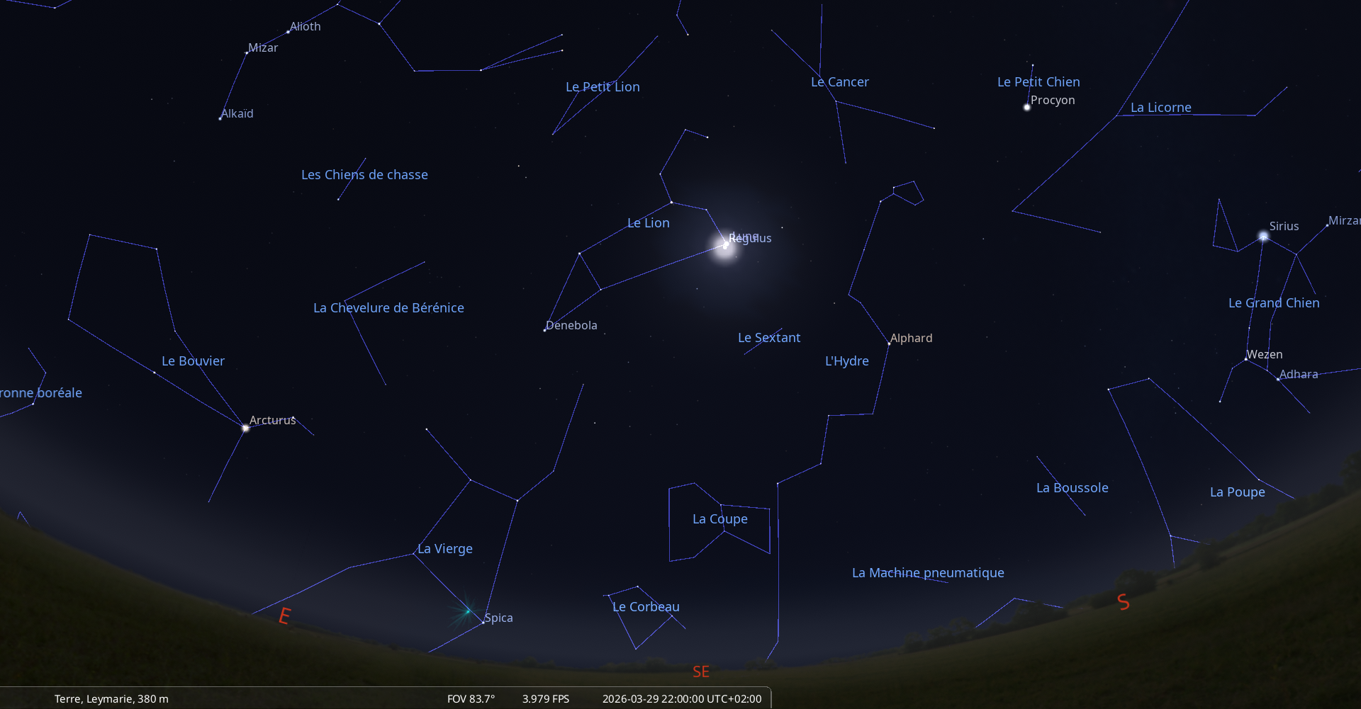 - A 21h55, la Lune est conjointe à Régulus dans le plan écliptique, l’étoile 0°18’ au Sud.