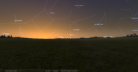 Elle se couche à l’Ouest-sud-ouest à 7h22 soit 9 minutes avant le lever du Soleil.