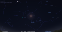 - A 4h44, la Lune est conjointe à l’amas de la Crèche (ou de la Ruche -Messier 44 ; m 3.1) dans le plan écliptique, l’amas ouvert 1°26’ au Sud ;
