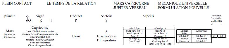 – Si du point de vue du pré contact, qui est celui du Sujet, Uranus est significateur de la résolution quantique dont il est porteur (représentation de la Transcendance d’Uranus dans les micro espaces irréductibles de la Vierge, et Jupiter, significateur des lois de la physique classique (représentation de l’Existence en Lenteur d’inhibition), du point de vue du plein contact qui est celui de la Relation, du monde social, Jupiter Verseau est significateur du renouveau du langage de la physique : carré Pluton Taureau, le pouvoir de la Transcendance, opposé Uranus Vierge, sa représentation, tous deux en signes de Terre pour la