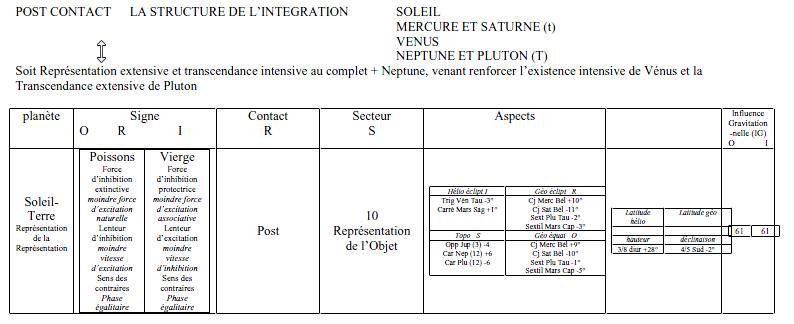majeure et force d’excitation naturelle mineure, lenteur d’inhibition majeure et vitesse d’excitation mineure, sens des ensembles ou phase ultra paradoxale), la structure, le principe, la mécanique, l’architecture du monde contacté, sont éprouvés dans la phase d’échange, dans l’instant où l’on passe d’un référentiel à l’autre (secteur 8).