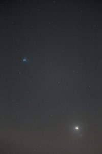 – Conjointe au Soleil le 6 janvier, elle est dans le champ du coronographe Lasco C3 du 29 décembre au 14 janvier ; diamètre apparent 0,2" (deux dixièmes de secondes d’arc).
