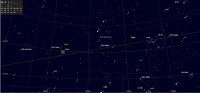 – Devant la constellation de la Vierge (Vir) depuis le 2 novembre, elle arrive devant la Balance (Lib) le 17 janvier à 12h41 à la longitude 217°30’ (8e SCO) et se déplace devant cette constellation jusqu’au 13 mars ; elle arrivera alors devant le Scorpion.